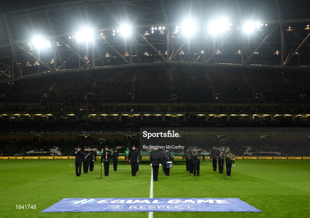 14 November 2019; An Garda Síochána band prior to during the International Friendly match between Republic of Ireland and New Zealand at the Aviva Stadium in Dublin. Photo by Stephen McCarthy/Sportsfile