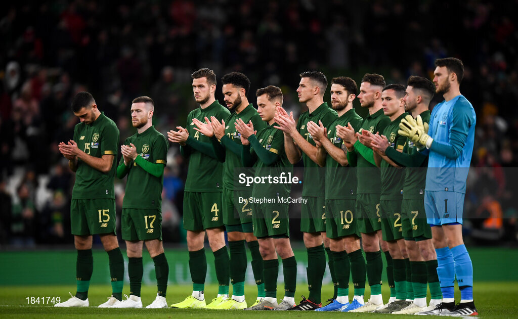 14 November 2019; Republic of Ireland players during a moments applause prior to the International Friendly match between Republic of Ireland and New Zealand at the Aviva Stadium in Dublin. Photo by Stephen McCarthy/Sportsfile