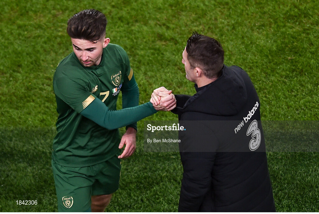 14 November 2019; Sean Maguire of Republic of Ireland and Republic of Ireland assistant coach Robbie Keane during the International Friendly match between Republic of Ireland and New Zealand at the Aviva Stadium in Dublin. Photo by Ben McShane/Sportsfile