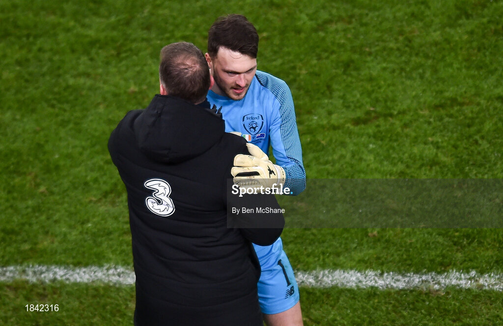 14 November 2019; Kieran O'Hara of Republic of Ireland and Republic of Ireland goalkeeping coach Alan Kelly during the International Friendly match between Republic of Ireland and New Zealand at the Aviva Stadium in Dublin. Photo by Ben McShane/Sportsfile