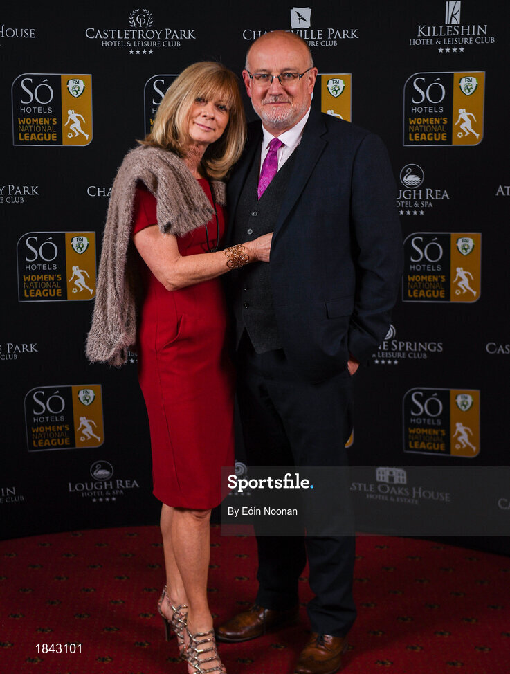 16 November 2019; Fran Gavin, FAI Director of Competitions with Barbara McCall arriving to the Só Hotels WNL Awards at Castle Oaks Hotel in Limerick. Photo by Eóin Noonan/Sportsfile
