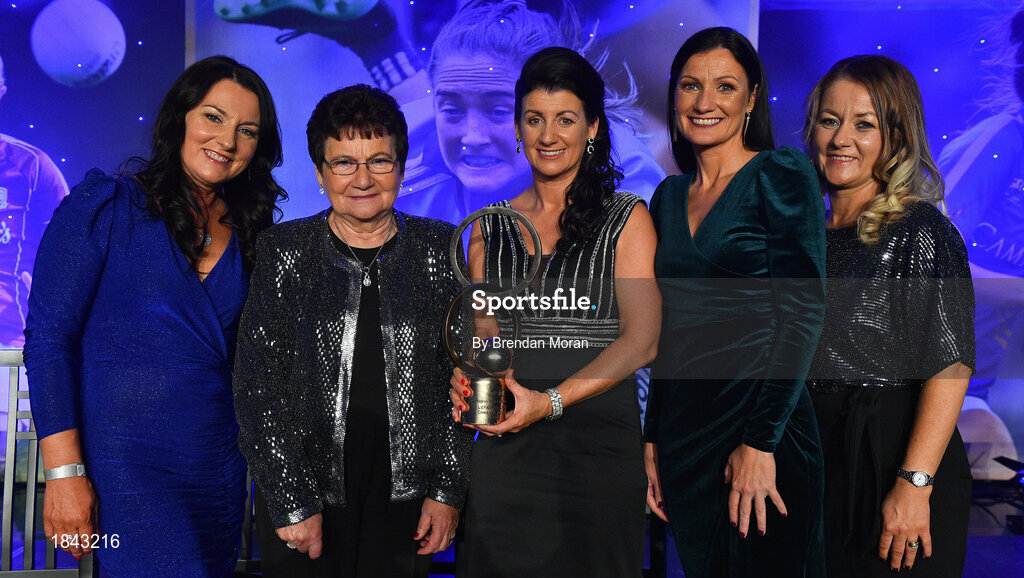 16 November 2019; Christina Heffernan of Mayo, centre, with her Hall of Fame award and from left, Sarah Melvin, Ann Heffernan, Marcella Heffernan and Caroline Malone during the TG4 All-Ireland Ladies Football All Stars Awards banquet, in association with Lidl, at the Citywest Hotel in Saggart, Dublin. Photo by Brendan Moran/Sportsfile