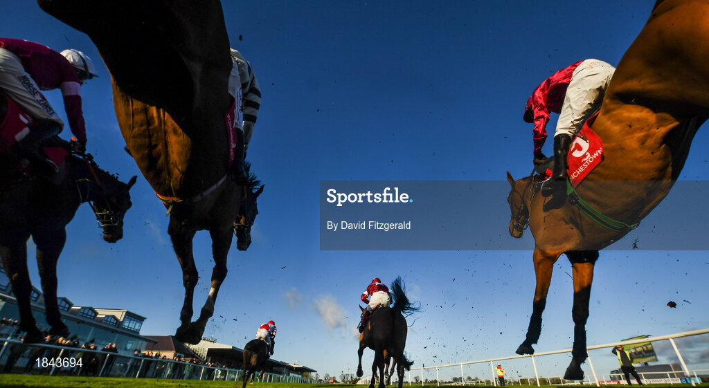 17 November 2019; Runners and riders clear the last on their first time round during the Liam & Valerie Brennan Memorial Florida Pearl Novice Steeplechase at Punchestown Racecourse in Naas, Kildare. Photo by David Fitzgerald/Sportsfile