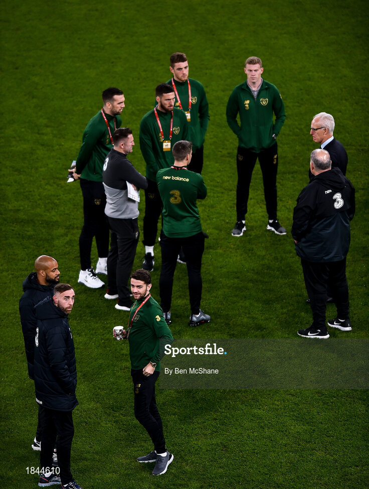 18 November 2019; David McGoldrick, Richard Keogh, Robbie Brady of Republic of Ireland inspect the pitch with team-mates prior to the UEFA EURO2020 Qualifier match between Republic of Ireland and Denmark at the Aviva Stadium in Dublin. Photo by Ben McShane/Sportsfile