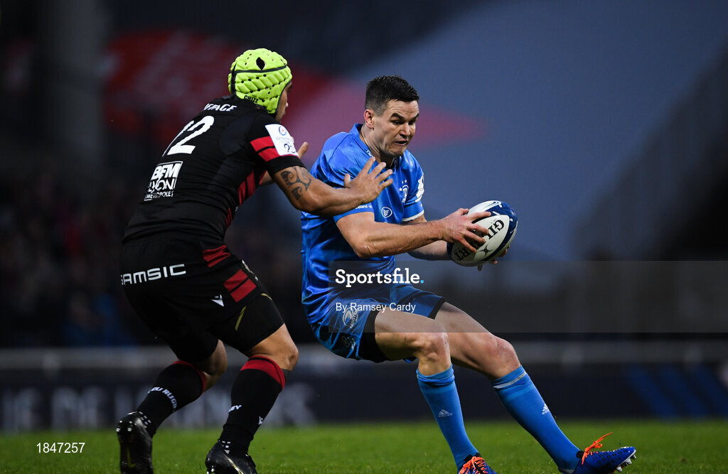 23 November 2019; Jonathan Sexton of Leinster in action against Charlie Ngatai of Lyon during the Heineken Champions Cup Pool 1 Round 2 match between Lyon and Leinster at Matmut Stadium in Lyon, France. Photo by Ramsey Cardy/Sportsfile