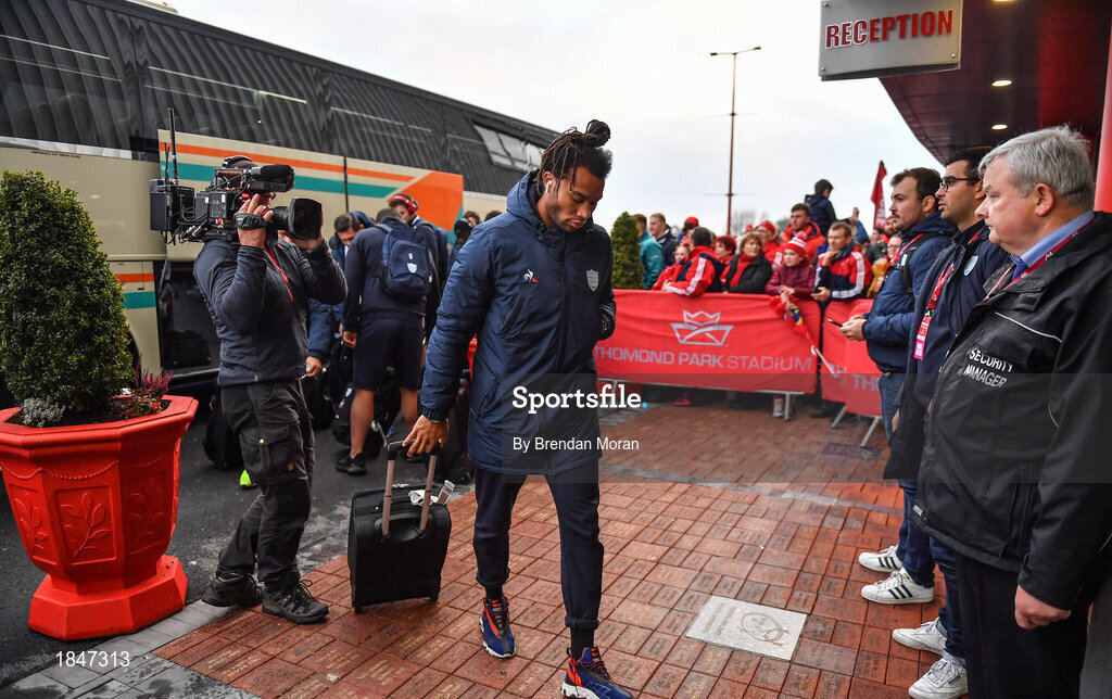 23 November 2019; Teddy Thomas of Racing 92 arrives prior to the Heineken Champions Cup Pool 4 Round 2 match between Munster and Racing 92 at Thomond Park in Limerick. Photo by Brendan Moran/Sportsfile