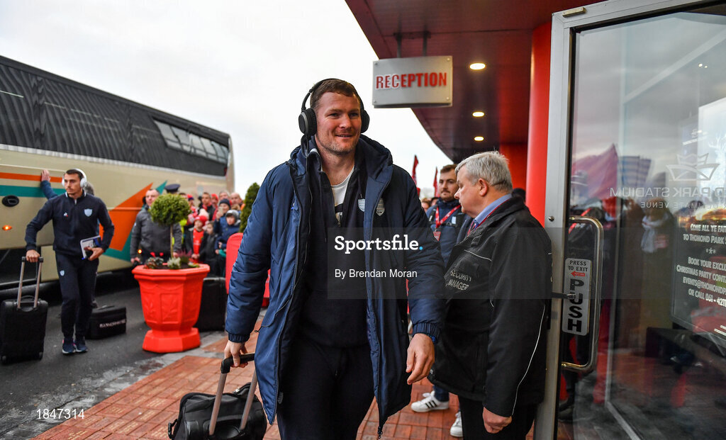 23 November 2019; Donnacha Ryan of Racing 92 arrives prior to the Heineken Champions Cup Pool 4 Round 2 match between Munster and Racing 92 at Thomond Park in Limerick. Photo by Brendan Moran/Sportsfile