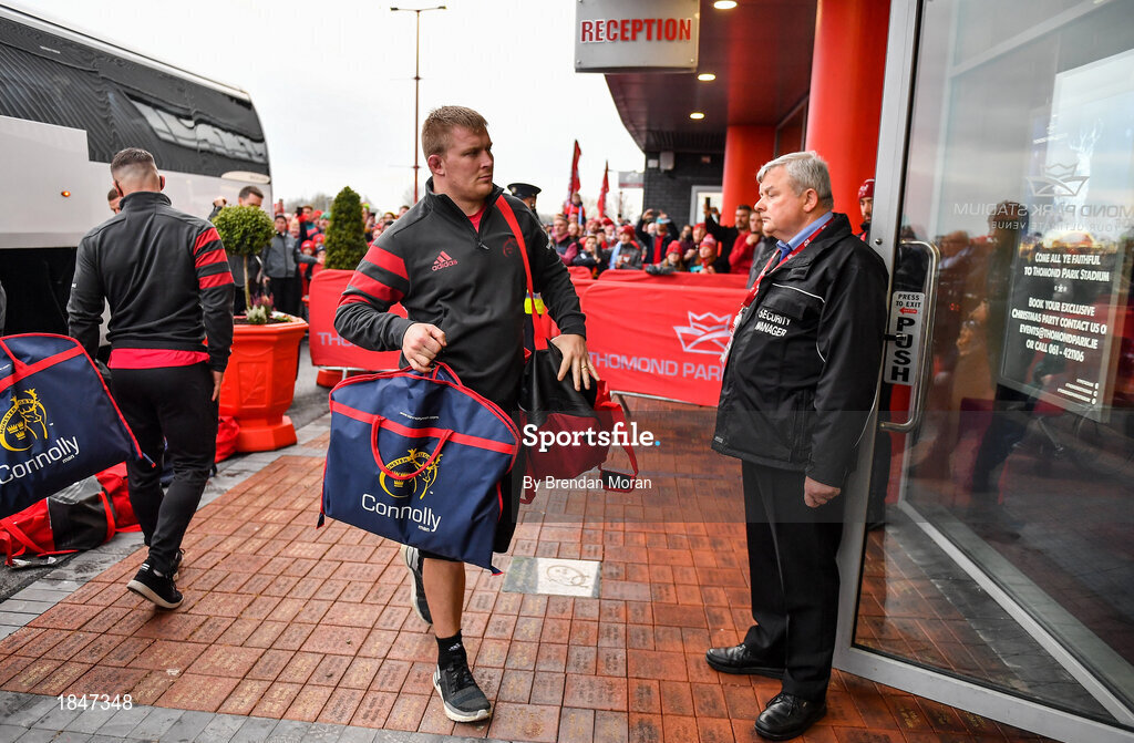 23 November 2019; John Ryan of Munster arrives prior to the Heineken Champions Cup Pool 4 Round 2 match between Munster and Racing 92 at Thomond Park in Limerick. Photo by Brendan Moran/Sportsfile