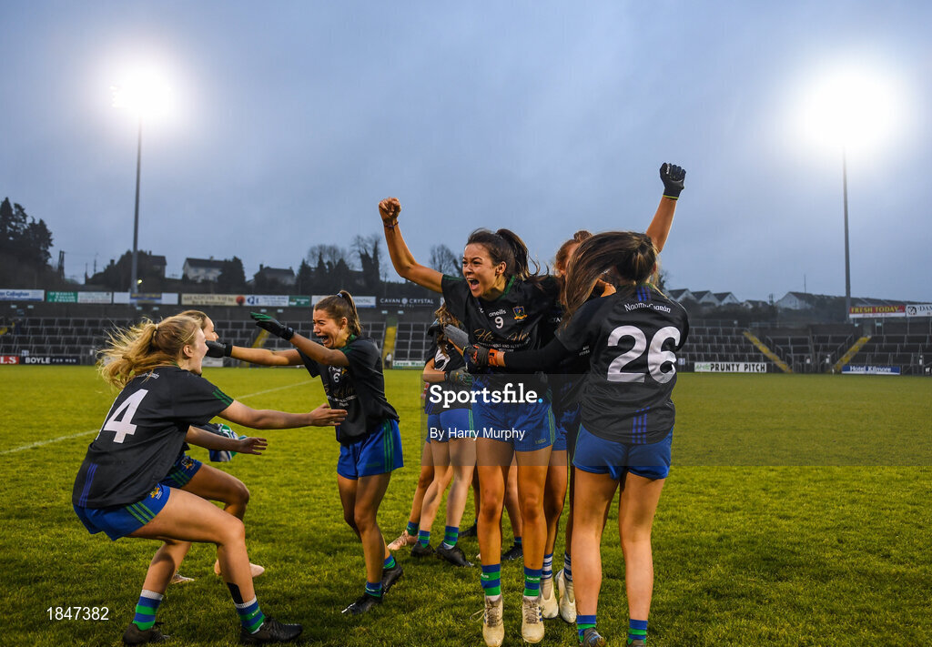 23 November 2019; Naomh Ciaran players, including Amy Gavin Mangan, centre, celebrate following the All-Ireland Ladies Intermediate Club Championship Final match between Naomh Ciaran and Naomh Pól at Kingspan Breffni in Cavan. Photo by Harry Murphy/Sportsfile