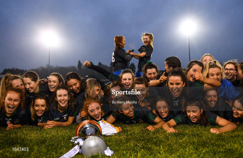 23 November 2019; Naomh Ciaran players celebrate with the trophy following the All-Ireland Ladies Intermediate Club Championship Final match between Naomh Ciaran and Naomh Pól at Kingspan Breffni in Cavan. Photo by Harry Murphy/Sportsfile