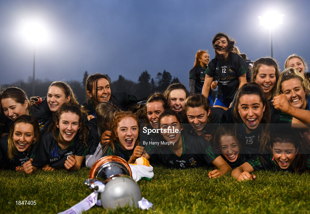 23 November 2019; Naomh Ciaran players celebrate with the trophy following the All-Ireland Ladies Intermediate Club Championship Final match between Naomh Ciaran and Naomh Pól at Kingspan Breffni in Cavan. Photo by Harry Murphy/Sportsfile