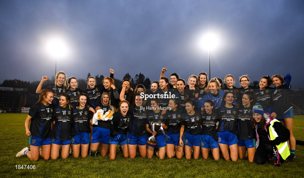 23 November 2019; Naomh Ciaran players celebrate with the trophy following the All-Ireland Ladies Intermediate Club Championship Final match between Naomh Ciaran and Naomh Pól at Kingspan Breffni in Cavan. Photo by Harry Murphy/Sportsfile