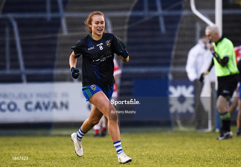 23 November 2019; Kate Kenny of Naomh Ciaran celebrates scoring a point during the All-Ireland Ladies Intermediate Club Championship Final match between Naomh Ciaran and Naomh Pól at Kingspan Breffni in Cavan. Photo by Harry Murphy/Sportsfile
