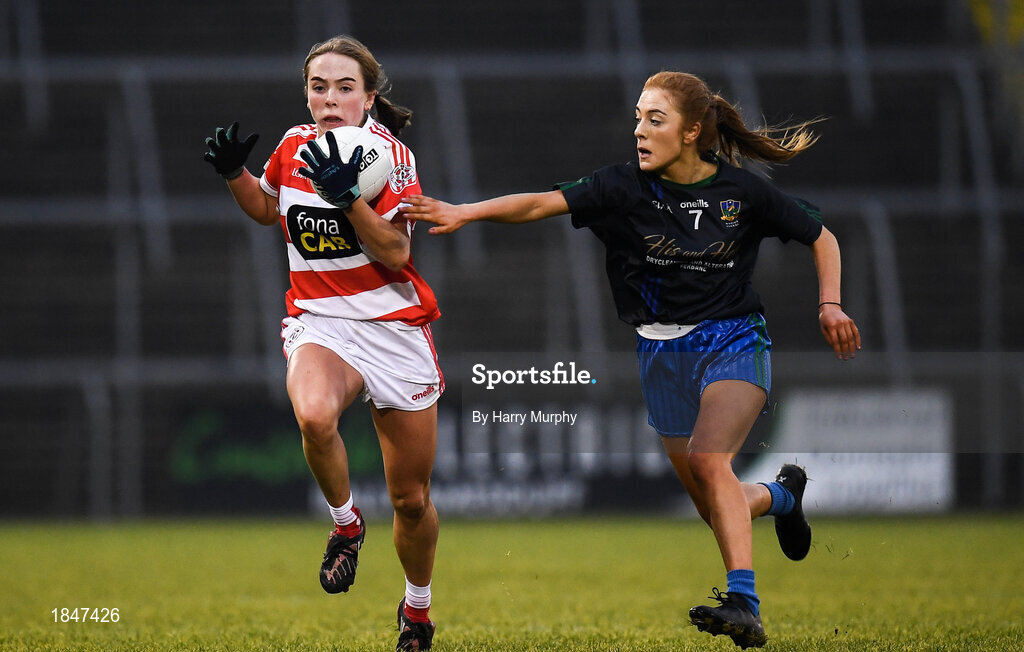 23 November 2019; Niamh Enright of Naomh Pól in action against Ffion Boland of Naomh Ciaran during the All-Ireland Ladies Intermediate Club Championship Final match between Naomh Ciaran and Naomh Pól at Kingspan Breffni in Cavan. Photo by Harry Murphy/Sportsfile