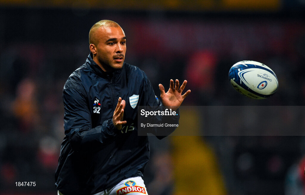 23 November 2019; Simon Zebo of Racing 92 warms up prior to the Heineken Champions Cup Pool 4 Round 2 match between Munster and Racing 92 at Thomond Park in Limerick. Photo by Diarmuid Greene/Sportsfile