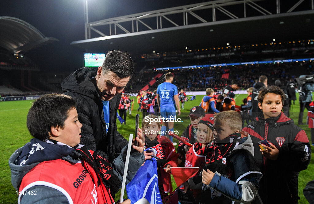23 November 2019; Leinster captain Jonathan Sexton signs autographs following the Heineken Champions Cup Pool 1 Round 2 match between Lyon and Leinster at Matmut Stadium in Lyon, France. Photo by Ramsey Cardy/Sportsfile