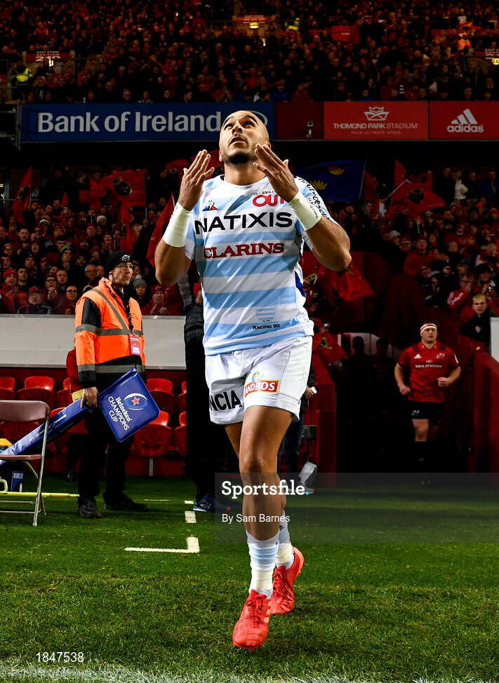 23 November 2019; Simon Zebo of Racing 92 leads out his team ahead of the Heineken Champions Cup Pool 4 Round 2 match between Munster and Racing 92 at Thomond Park in Limerick. Photo by Sam Barnes/Sportsfile