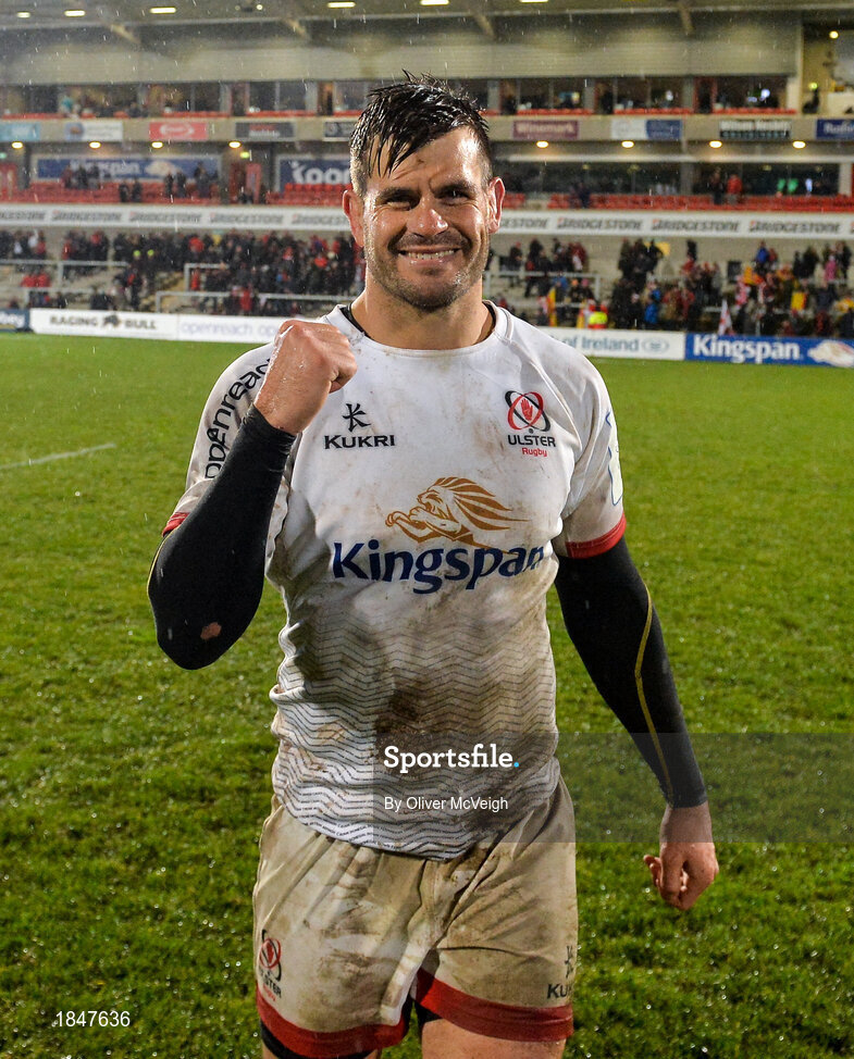 22 November 2019; Louis Ludik of Ulster celebrates after the Heineken Champions Cup Pool 3 Round 2 match between Ulster and ASM Clermont Auvergne at Kingspan Stadium in Belfast. Photo by Oliver McVeigh/Sportsfile