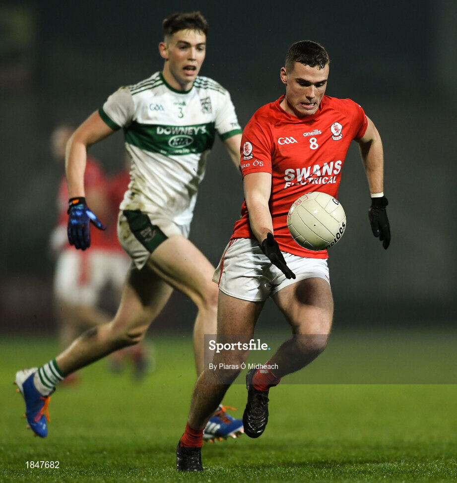 23 November 2019; Jordan Morrissey of Éire Óg gets past Frank Flanagan of Portlaoise during the AIB Leinster GAA Football Senior Club Championship Semi-Final match between Portlaoise and Éire Óg at MW Hire O’Moore Park in Portlaoise, Co Laois. Photo by Piaras Ó Mídheach/Sportsfile