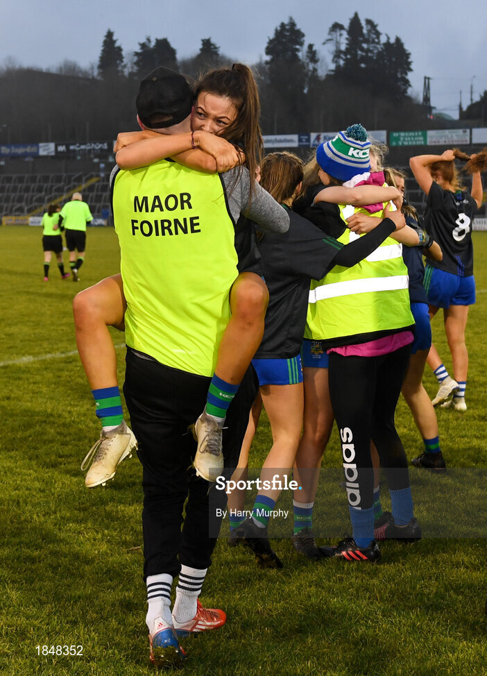 23 November 2019; Amy Gavin Mangan of Naomh Ciaran and team-mates celebrate following the All-Ireland Ladies Intermediate Club Championship Final match between Naomh Ciaran and Naomh Pól at Kingspan Breffni in Cavan. Photo by Harry Murphy/Sportsfile