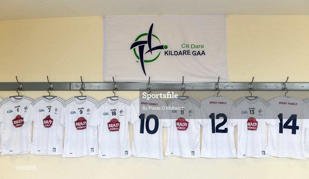 30 November 2019; A general view of jerseys in the Kildare dressing room before the Kehoe Cup Round 1 match between Offaly and Kildare at St Brendan's Park in Birr, Co Offaly. Photo by Piaras Ó Mídheach/Sportsfile