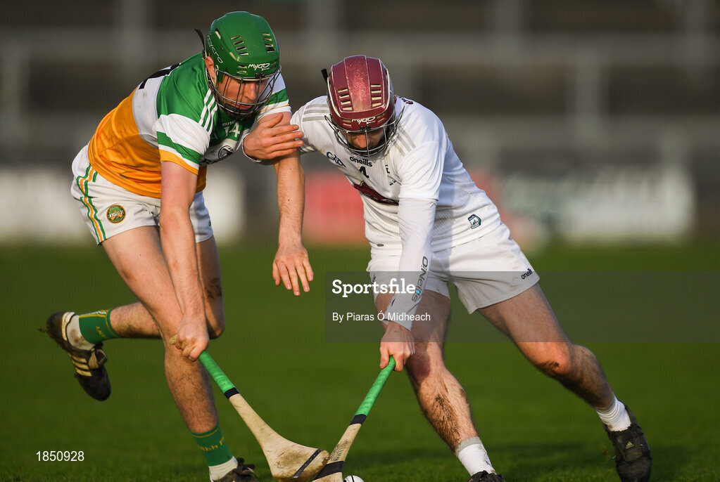 30 November 2019; Cathal Derivan of Kildare in action against Brian Duignan of Offaly during the Kehoe Cup Round 1 match between Offaly and Kildare at St Brendan's Park in Birr, Co Offaly. Photo by Piaras Ó Mídheach/Sportsfile