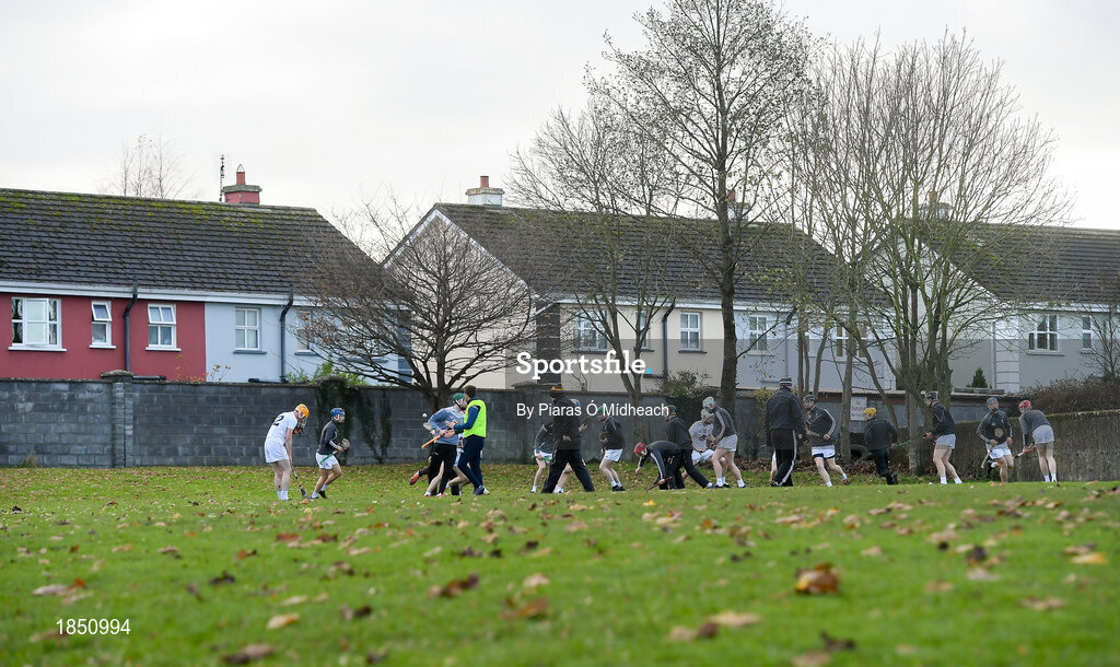 30 November 2019; The Kildare hurlers warm-up at Mercy Primary School before the Kehoe Cup Round 1 match between Offaly and Kildare at St Brendan's Park in Birr, Co Offaly. Photo by Piaras Ó Mídheach/Sportsfile