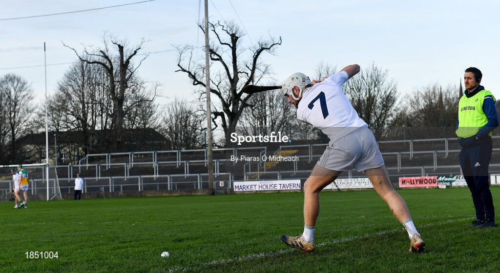 30 November 2019; Drew Costello of Kildare takes a sideline cut watched by his manager David Herity during the Kehoe Cup Round 1 match between Offaly and Kildare at St Brendan's Park in Birr, Co Offaly. Photo by Piaras Ó Mídheach/Sportsfile