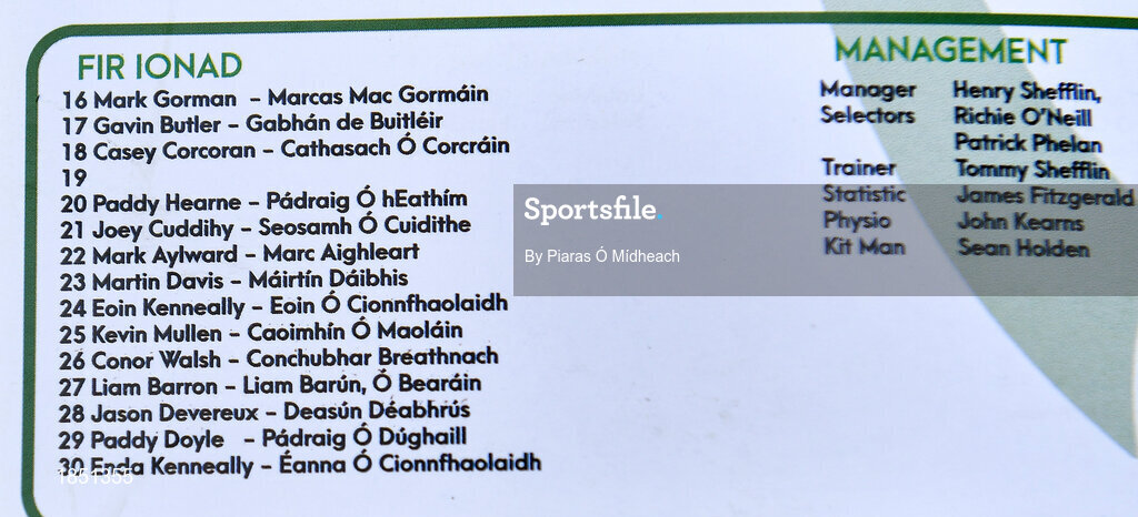 1 December 2019; A general view of the match programme showing the no.19 place vacant on the Ballyhale Shamrocks squad as a mark of respect to the late Eugene Aylward, who passed away earlier this year, at the AIB Leinster GAA Hurling Senior Club Championship Final match between Ballyhale Shamrocks and St Mullin's at MW Hire O'Moore Park in Portlaoise, Co Laois. Photo by Piaras Ó Mídheach/Sportsfile