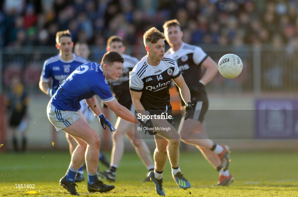 1 December 2019; Jerome Johnston of Kilcoo in action against Ultan Doherty of Naomh Conaill during the AIB Ulster GAA Football Senior Club Championship Final match between Kilcoo and Naomh Conaill at Healy Park in Omagh, Tyrone. Photo by Oliver McVeigh/Sportsfile