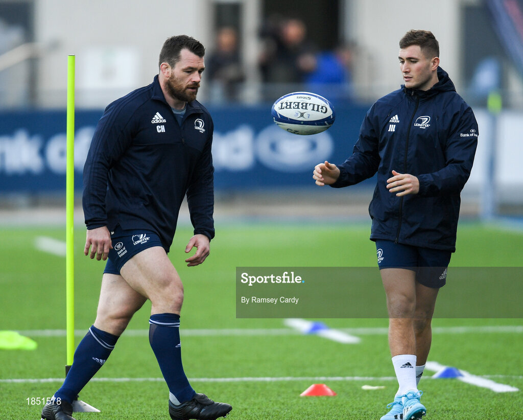 2 December 2019; Cian Healy, left, and Jordan Larmour during Leinster Rugby squad training at Energia Park in Donnybrook, Dublin. Photo by Ramsey Cardy/Sportsfile