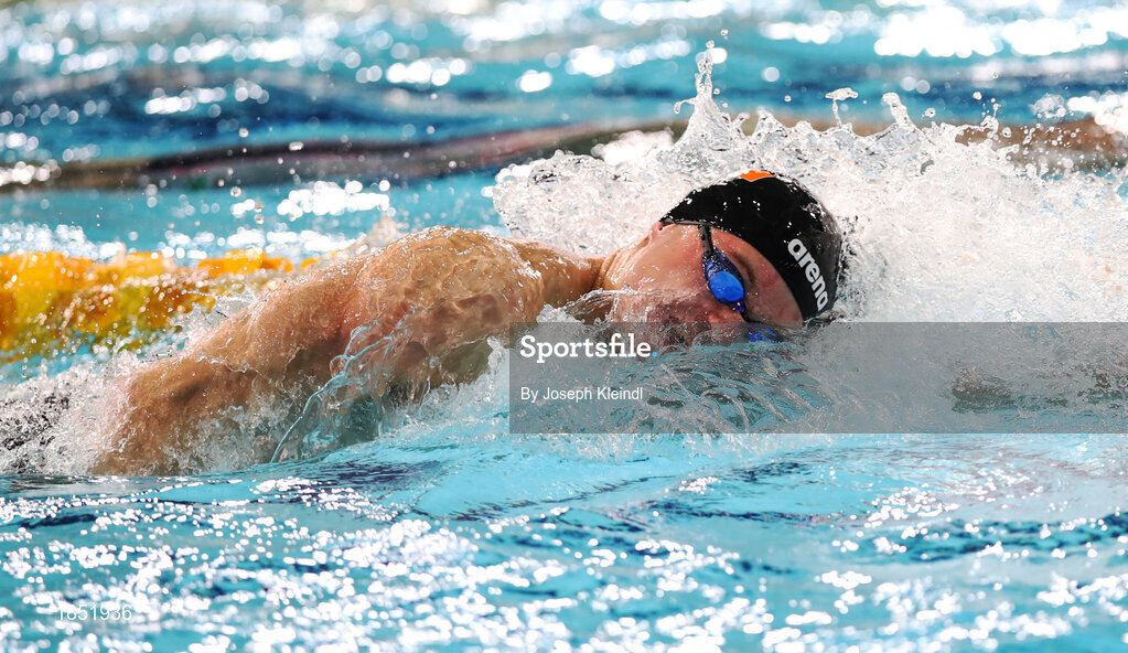 5 December 2019; Robert Powell of Ireland competes in the heats of the Men's 200m Freestyle during Day Two of the European Short Course Swimming Championships 2019 at Tollcross International Swimming Centre in Glasgow, Scotland. Photo by Joseph Kleindl/Sportsfile