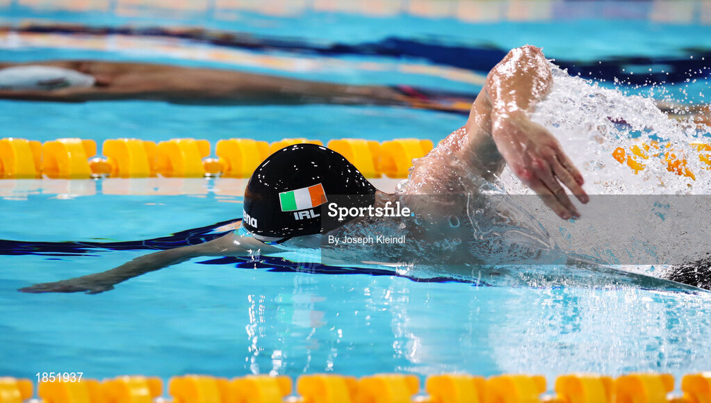 5 December 2019; Robert Powell of Ireland competes in the heats of the Men's 200m Freestyle during Day Two of the European Short Course Swimming Championships 2019 at Tollcross International Swimming Centre in Glasgow, Scotland. Photo by Joseph Kleindl/Sportsfile