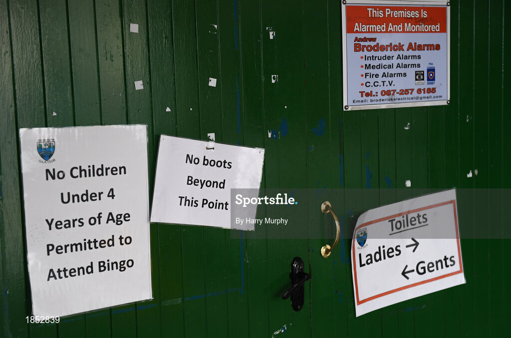 7 December 2019; Signs are seen at the entrance to the clubhouse prior to the 2020 O'Byrne Cup Round 1 match between Laois and Offaly at McCann Park in Portarlington, Co Laois. Photo by Harry Murphy/Sportsfile