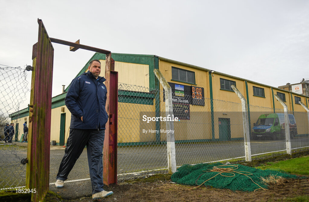 7 December 2019; Laois manager Micheál Quirke walks out prior to the 2020 O'Byrne Cup Round 1 match between Laois and Offaly at McCann Park in Portarlington, Co Laois. Photo by Harry Murphy/Sportsfile