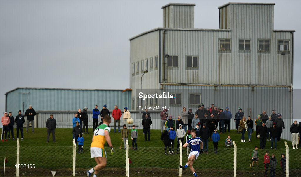 7 December 2019; Garry Comerford of Laois kicks a free during the 2020 O'Byrne Cup Round 1 match between Laois and Offaly at McCann Park in Portarlington, Co Laois. Photo by Harry Murphy/Sportsfile