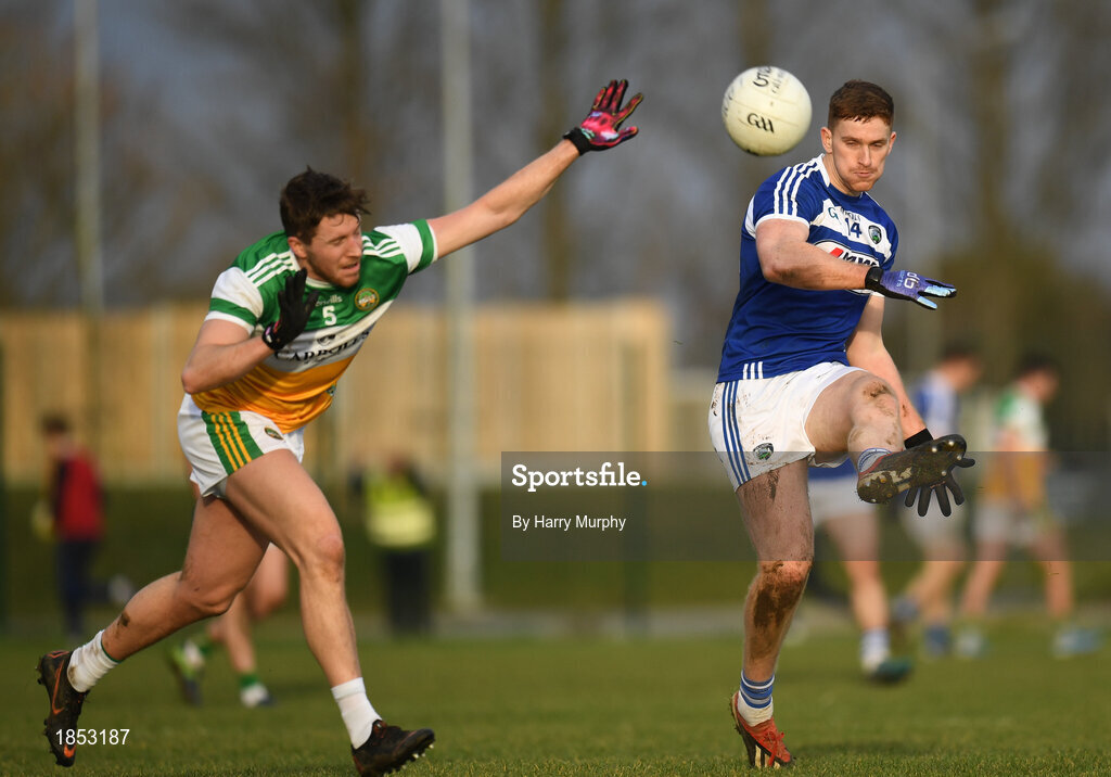 7 December 2019; Evan O'Carroll of Laois in action against Cian Donohoe of Offaly during the 2020 O'Byrne Cup Round 1 match between Laois and Offaly at McCann Park in Portarlington, Co Laois. Photo by Harry Murphy/Sportsfile