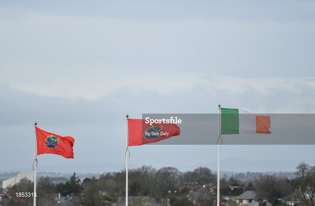 7 December 2019; A view of Munster Rugby and tri-colour flags prior to the Heineken Champions Cup Pool 4 Round 3 match between Munster and Saracens at Thomond Park in Limerick. Photo by Seb Daly/Sportsfile