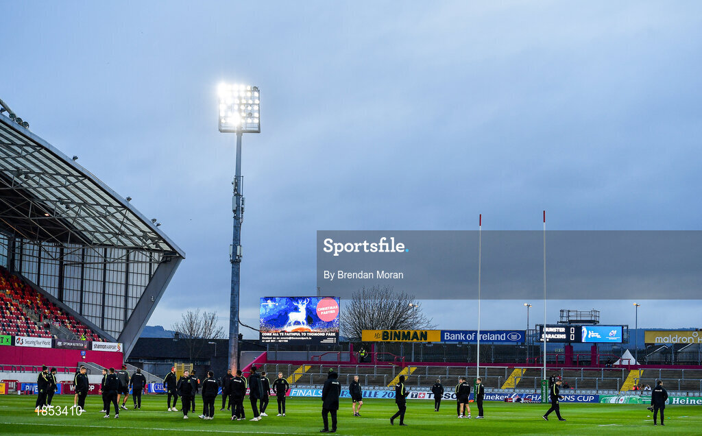 7 December 2019; The Saracens team walk the pitch prior to the Heineken Champions Cup Pool 4 Round 3 match between Munster and Saracens at Thomond Park in Limerick. Photo by Brendan Moran/Sportsfile