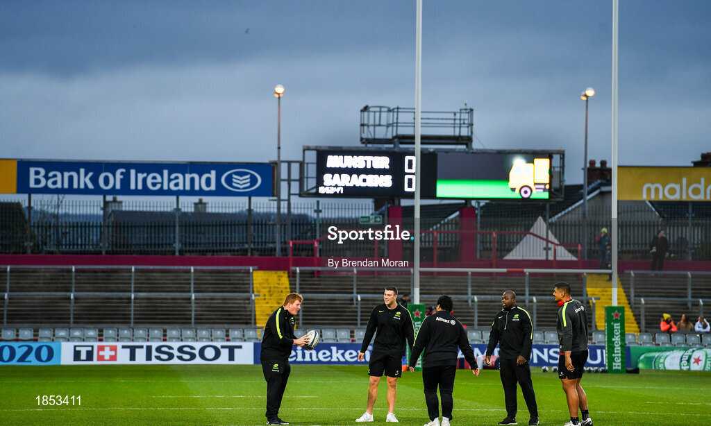 7 December 2019; The Saracens team walk the pitch prior to the Heineken Champions Cup Pool 4 Round 3 match between Munster and Saracens at Thomond Park in Limerick. Photo by Brendan Moran/Sportsfile
