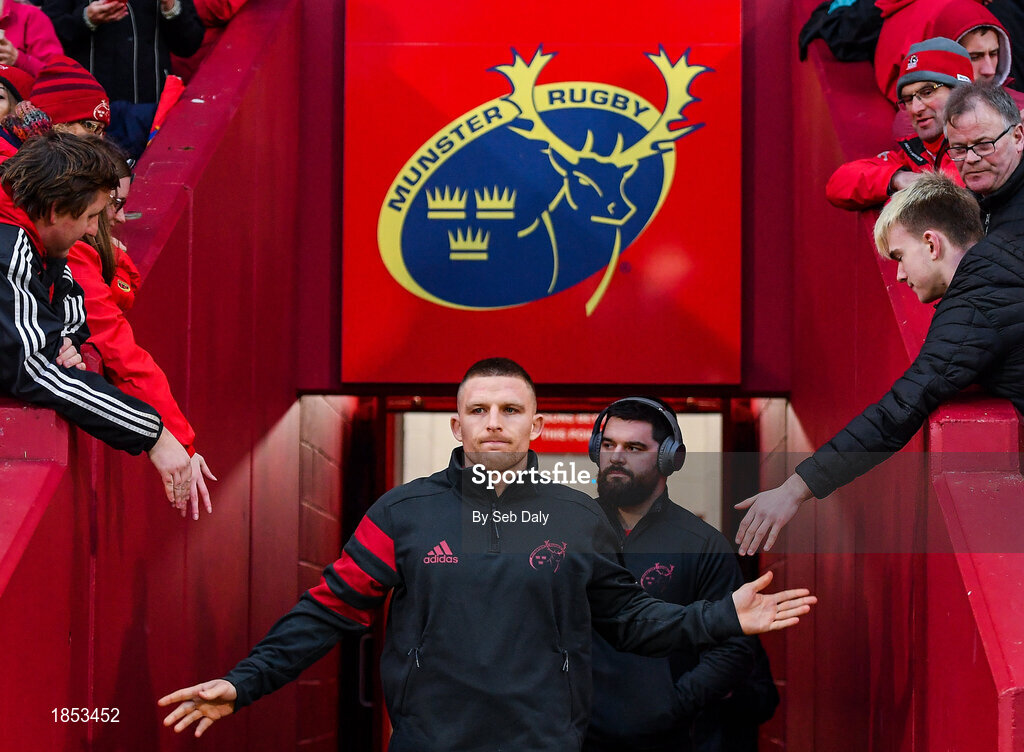 7 December 2019; Andrew Conway of Munster makes his way to the pitch prior to the Heineken Champions Cup Pool 4 Round 3 match between Munster and Saracens at Thomond Park in Limerick. Photo by Seb Daly/Sportsfile