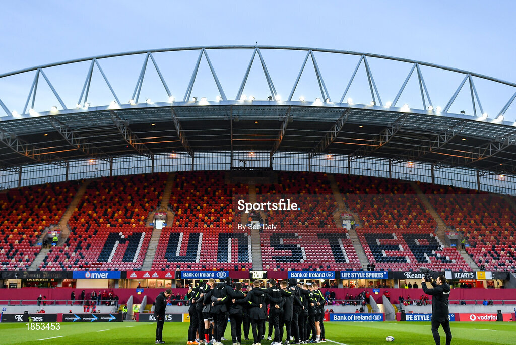 7 December 2019; Saracens players make a huddle prior to the Heineken Champions Cup Pool 4 Round 3 match between Munster and Saracens at Thomond Park in Limerick. Photo by Seb Daly/Sportsfile