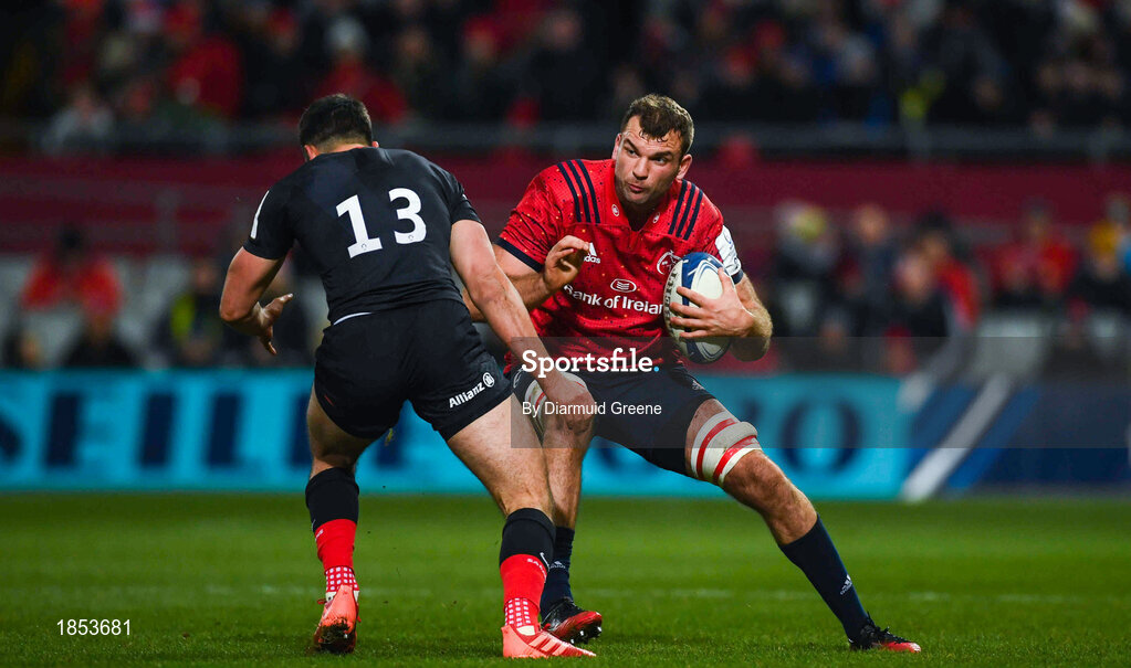 7 December 2019; Tadhg Beirne of Munster is tackled by Alex Lozowski of Saracens during the Heineken Champions Cup Pool 4 Round 3 match between Munster and Saracens at Thomond Park in Limerick. Photo by Diarmuid Greene/Sportsfile