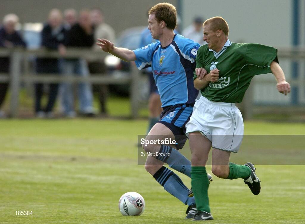 5 August 2005; Tony McDonnell, UCD, in action against Anthony Gorman, Finn Harps. eircom League, Premier Division, UCD v Finn Harps, Belfield Park, UCD, Dublin. Picture credit; Matt Browne / SPORTSFILE