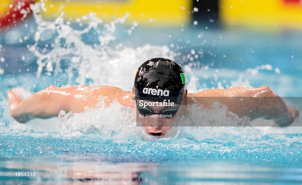 8 December 2019; Cillian Melly of Ireland competing in the Men's 200m Butterfly Heats during day five of the European Short Course Swimming Championships 2019 at Tollcross International Swimming Centre in Glasgow, Scotland. Photo by Joseph Kleindl/Sportsfile