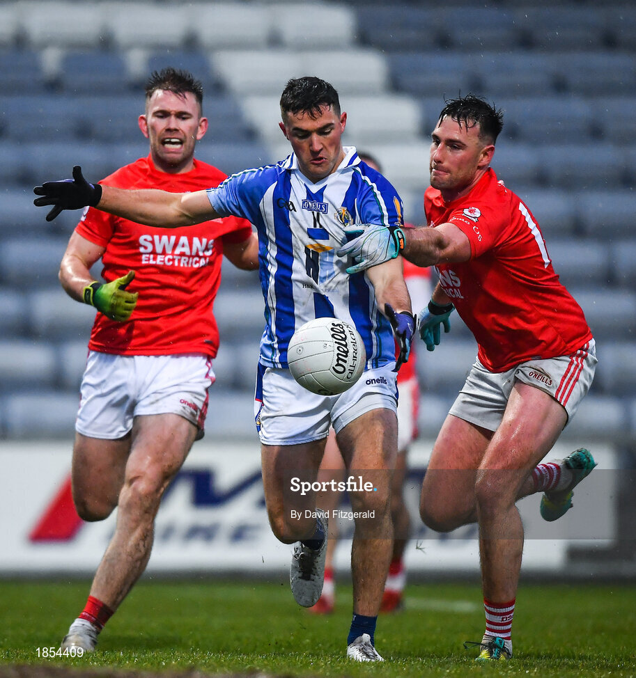 8 December 2019; Colm Basquel of Ballyboden St Endas in action against Eoghan Ruth of Éire Óg during the AIB Leinster GAA Football Senior Club Championship Final between Eire Óg Carlow and Ballyboden St. Enda's GAA at MW Hire O'Moore Park in Portlaoise, Co. Laois. Photo by David Fitzgerald/Sportsfile
