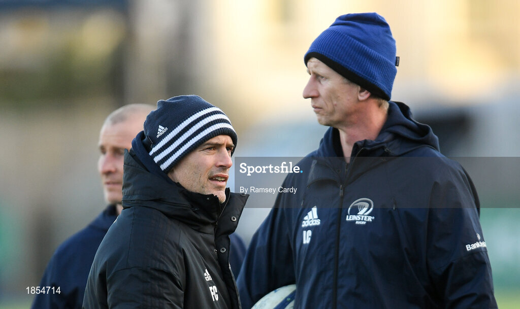 9 December 2019; Backs coach Felipe Contepomi, centre, senior coach Stuart Lancaster, left, and head coach Leo Cullen during Leinster Rugby squad training at Energia Park in Donnybrook, Dublin. Photo by Ramsey Cardy/Sportsfile