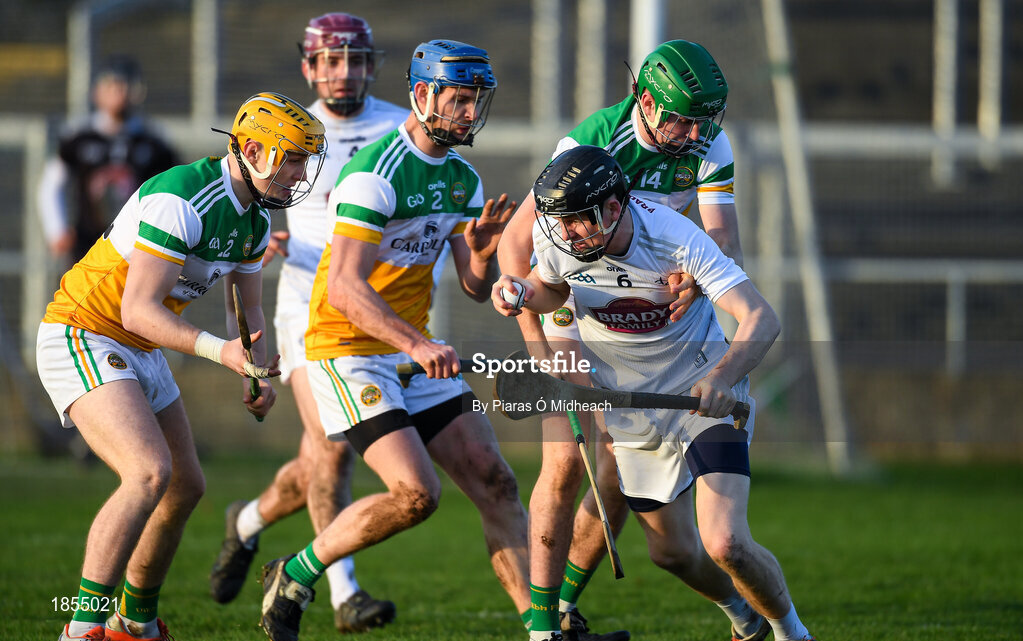 30 November 2019; Rian Boran of Kildare gets past Brian Duignan of Offaly during the Kehoe Cup Round 1 match between Offaly and Kildare at St Brendan's Park in Birr, Co Offaly. Photo by Piaras Ó Mídheach/Sportsfile