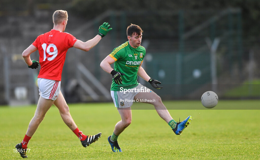 8 December 2019; Darragh Campion of Meath in action against Paul Matthews of Louth during the 2020 O'Byrne Cup Round 1 match between Meath and Louth at Páirc Tailteann in Navan, Co Meath. Photo by Piaras Ó Mídheach/Sportsfile