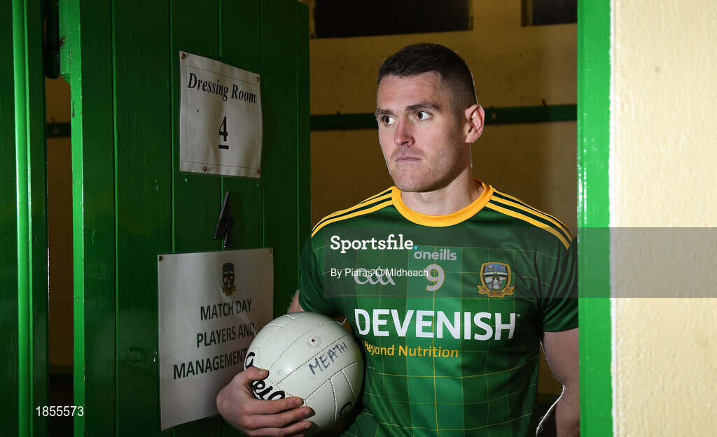 13 December 2019; Bryan Menton during the launch of the 2020 Meath GAA Jersey at Páirc Tailteann in Navan, Co Meath. Photo by Piaras Ó Mídheach/Sportsfile